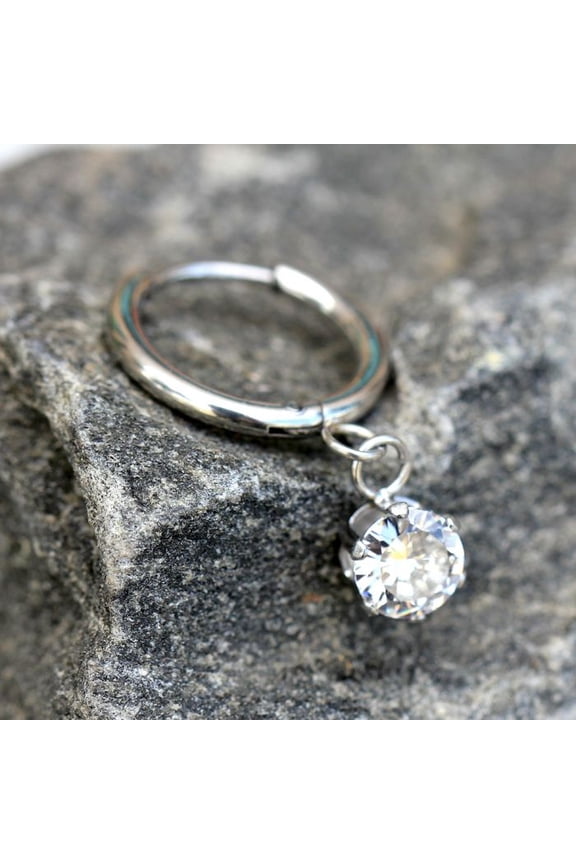 316L Stainless Steel Prong Set CZ Dangle Clicker Cartilage Ring