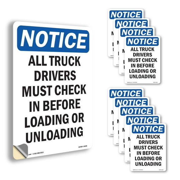 All Truck Drivers Must Check In OSHA Notice Vinyl Decal Label 10 Inch x 7 Inch - 10 Pack From $26.99