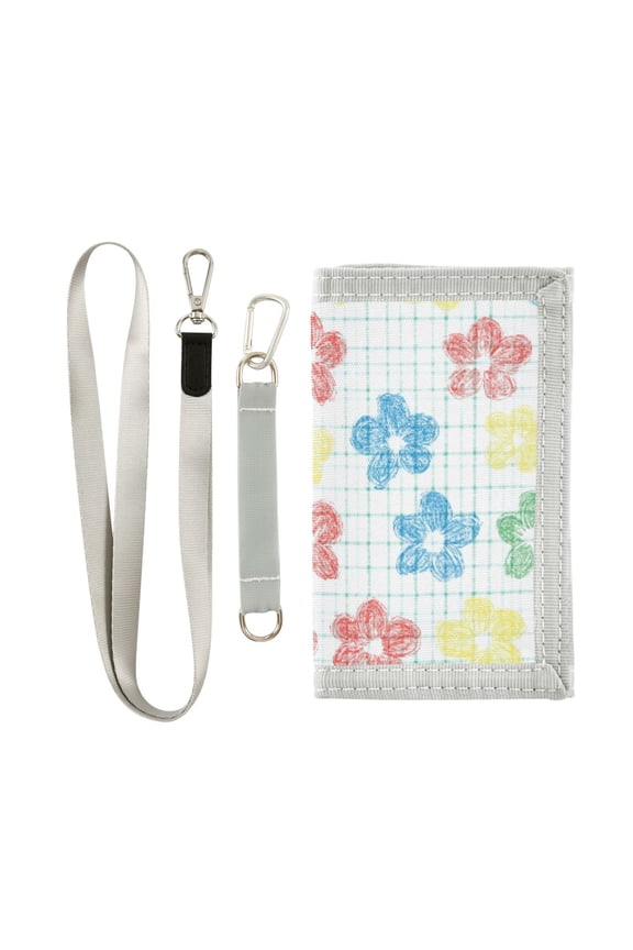 Nylon Trifold Card Wallet with ID Window Zipper Pocket for Men Women Teen Checkered Stripes with Hand Drawn Flower From $14.99
