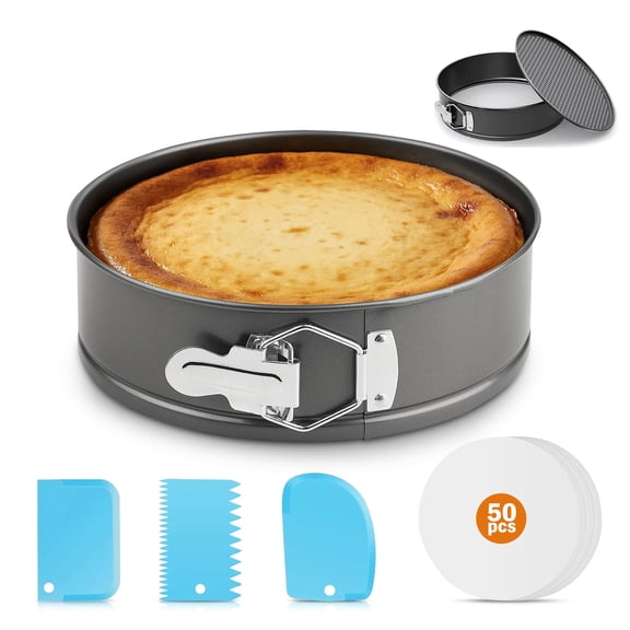 Clearance 9 Inch Springform Pan Tin, Non-stick Cheesecake Pan Springform Pan with 1 Pcs Pans, 3 Pcs Scrappers and 50 PCS Parchment Paper $11.99 Was $49.99
