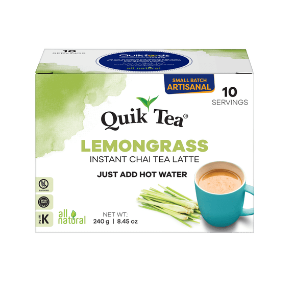 QuikTea Instant Lemongrass Chai Tea Latte 10 Count, Refreshing lemongrass lift , low Caffeine, No artificial colors, flavors or preservatives Just Add Hot Water, Kosher, gluten free, non-GMO $8.99 Was $11.92