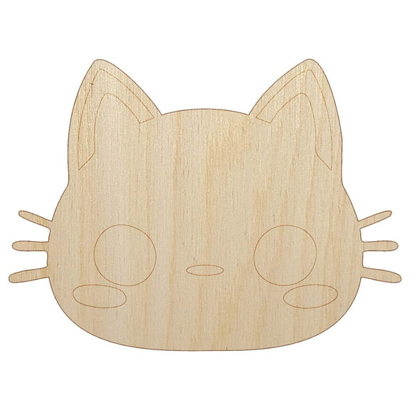 Charming Kawaii Chibi Cat Kitten Face Blushing Cheeks Wood Shape Unfinished Piece Cutout Craft DIY Projects - 6.25 Inch Size - 1/4 Inch Thick From $4.99