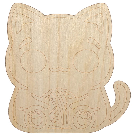 Content Kawaii Chibi Sitting Cat with Ball of Yarn Wood Shape Unfinished Piece Cutout Craft DIY Projects - 6.25 Inch Size - 1/8 Inch Thick From $4.99