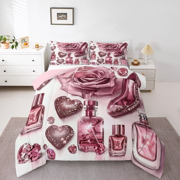 Manfei Fashion High Heel Bedding Comforter Set for Girl, Women Perfume Twin Comforter Sets, Pink Princess Bowknot Reversible Bedding Set, Lightweight Room Decor, 2-Piece From $43.69