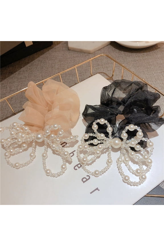 Spring Chiffon Pearl Butterfly Hair Rings - Large Size, Fashionable Hair Accessories for Students $26.99