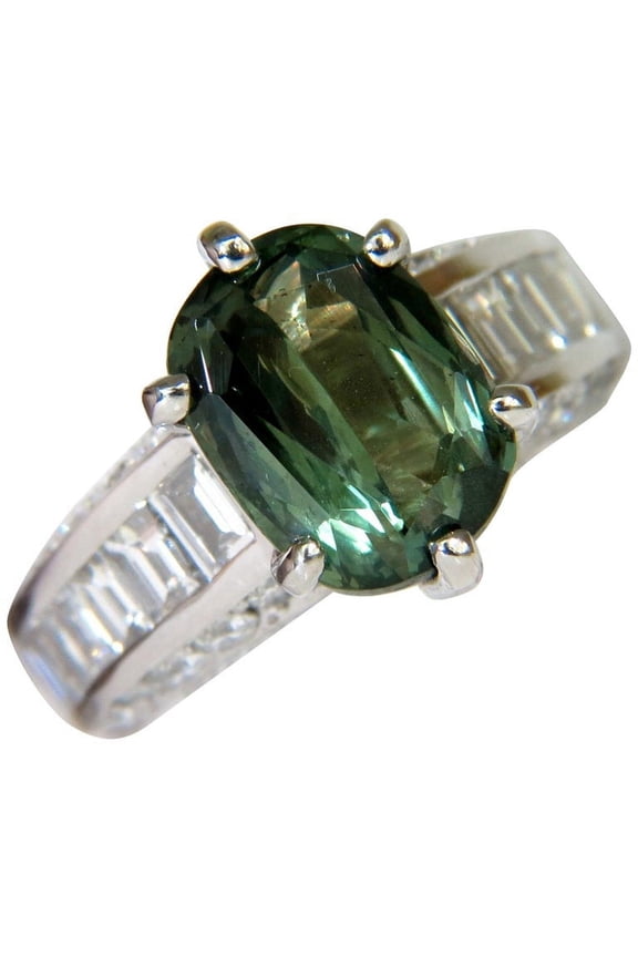 current price $6,950.00GIA FINE GEM GREEN 7.60CT NATURAL CHRYSOBERYL DIAMOND RING