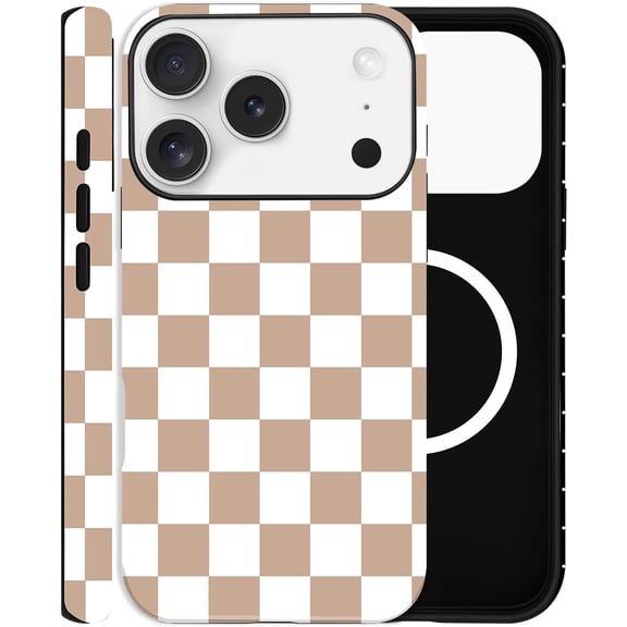 BDKWID-Checkered Phone Case for iPhone 17 Pro, Compatible with MagSafe, Aesthetic Checkerboard Cute Magnetic Design Hybrid 2-Layer Hard Shell Cover for Women, Brown $37.98