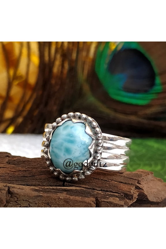Divya Shakti Larimar Ring, Designer Ring, Oval Shape Ring, Solid 925 Sterling Silver Ring, Handmade Designer prong Set Ring, Ring For Women's Jewelry From $44.99