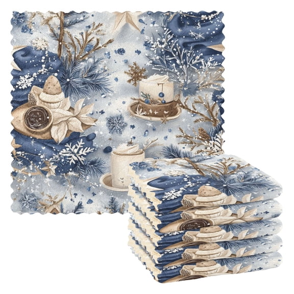 Winter Themed Cake 6 Pack Kitchen Cleaning Cloths 11'' x 11'', Super Absorbent, Soft Double Layer Plush for Dish and Surface Cleaning