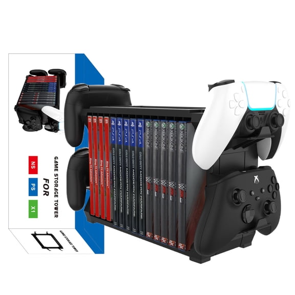 current price $21.99Video Game Storage Tower with Controller Controller Hooks for PS5/Switch/Xbox Series S & X, Universal Game Video Storage Organizer Game Disk Rack, Hold Up to 4 Controller and 15 CD Disc