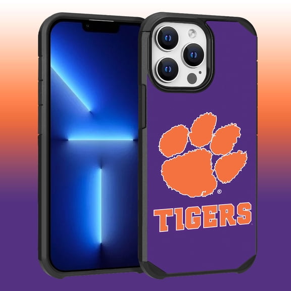 current price $24.99Apple iPhone 13 Pro Max (6.7) / 12 Pro Max (6.7) - Licensed NCAA of Clemson University Tigers Logo on Purple Textured Dual Layer Case