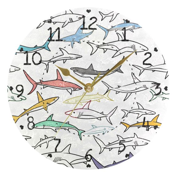 Drawing Fishes Doddle Style Round Wall Clock Silent Analog Battery Operated Gold Pointer Home Decor 9.84" Diameter