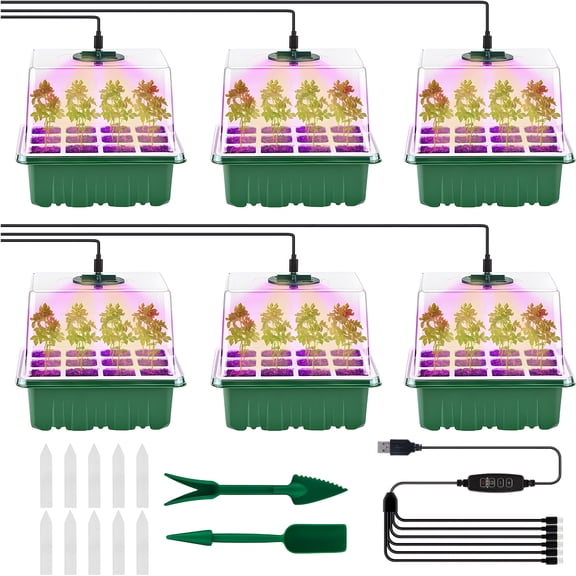 Best seller KORALAKIRI Seed Starter Tray with Light, 6PCS Seed Starter Kit with Grow Light, Seedling Starter Trays with Humidity Domes, Covers Height 3.9", Indoor Gardening Plant Germination Trays $22.99 Was $29.99