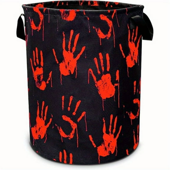 Bloodstain Handprint Laundry Basket with Blood Drop Pattern, Foldable Oxford Cloth Funny Handbag Laundry Basket, Clothes Storage Bucket, Storage Bucket Organizer, Suitable for Bathroom / Laundry Room From $22.99