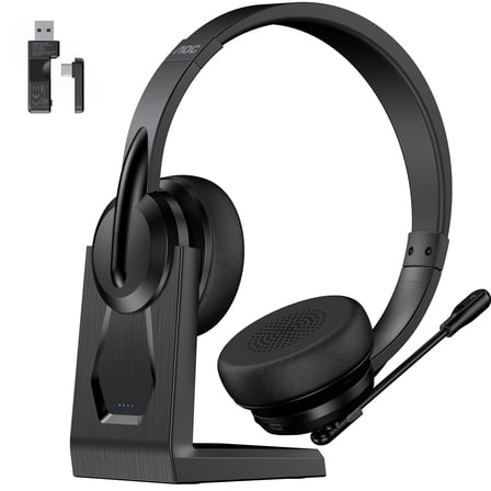 AOC Wireless Headset with Microphone for Work, Bluetooth Headset, Computer Headset with Noise Cancelling Mic, Charging Base, USB Dongle for Work, Cell Phones, Computer, Black From $38.59