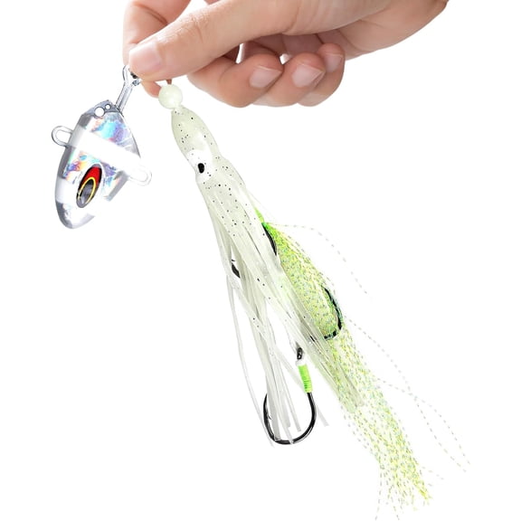 current price $19.99100g Saltwater Fishing Jigs - Squid Lure with Glow in The Dark Jig Head, Trolling Lures Saltwater, Squid Jigs Saltwater for Sea Bass Cod Hairtail, Slow Jigging Soft Plastic Bait