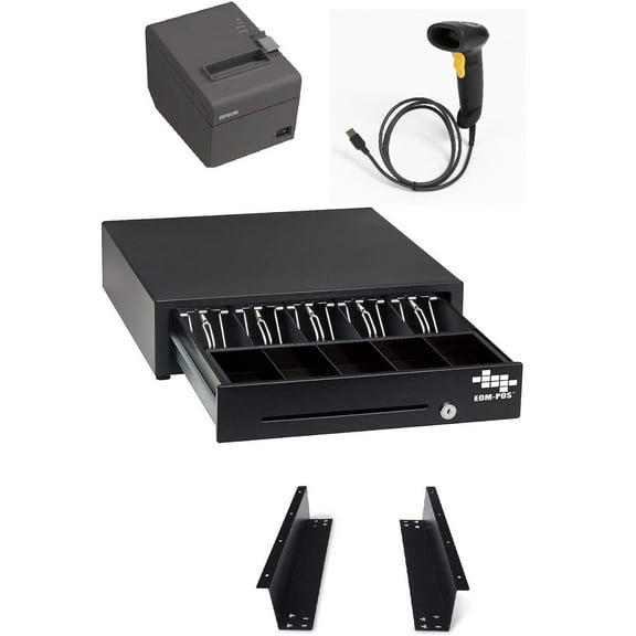 EOM-POS Square-Compatible POS Hardware Bundle: Cash Drawer, Receipt Printer, Barcode Scanner, Mounting Brackets