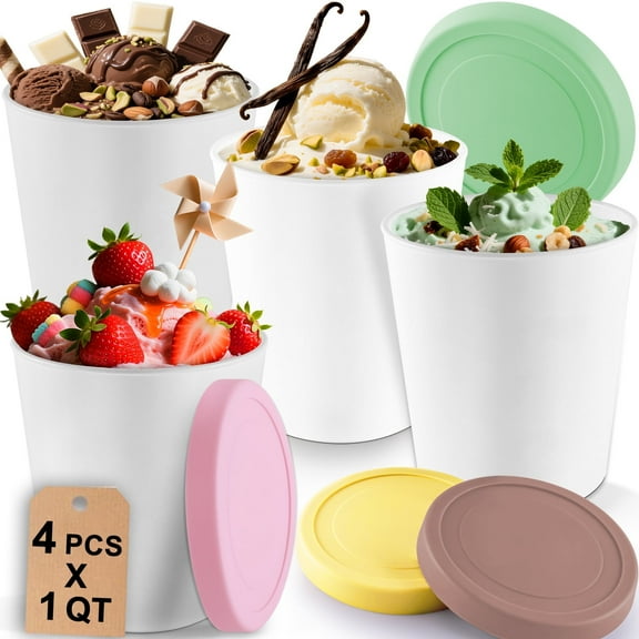 Clearance Aovky Ice Cream Containers with Silicone Lids for Homemade, 4 Pack 1 Quart Each Reusable Ice Cream Storage Sorbet Frozen Yogurt Containers Set BPA Free Stackable Leakproof Dishwasher Freezer Safe $15.99 Was $26.99