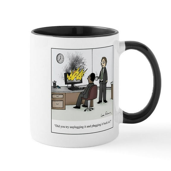 CafePress - Unplug And Plug Back In Cartoon - 11 oz Ceramic Mug - Novelty Coffee Tea Cup From $14.99
