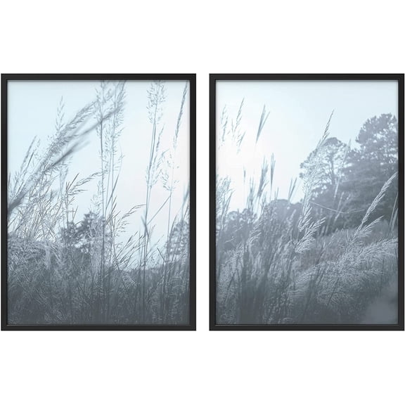 Available in additional 2 optionsPixonSign Framed Wall Art Collage Print Gallery Set Beach Grass Sways in Wind Nature Ocean Photography Realism Modern Landscape Relax/Calm Duotone for Living Room, Bedroom, Office - 12"x16"x2 BLACK