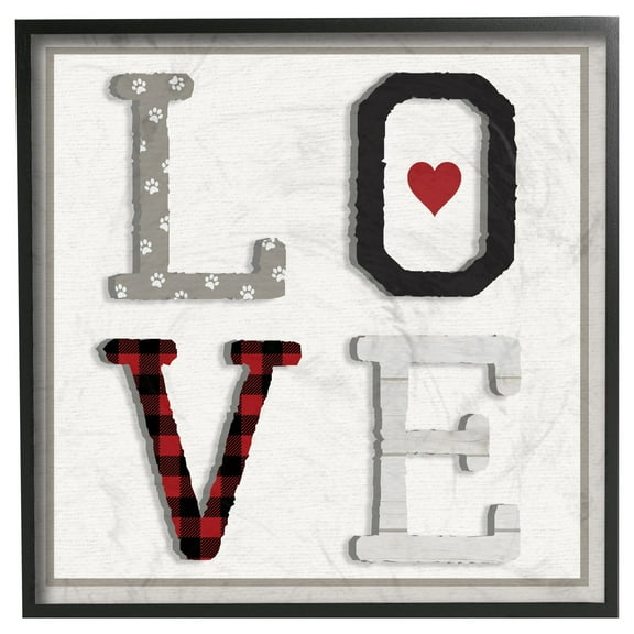 The Stupell Home Decor Collection LOVE Texture Collage Dog Paw Print Framed Giclee Wall Art
