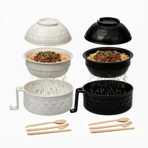 2 Sets of Microwave Ramen Bowls, Portable Wheat Fiber Ramen Cooker with Featuring Integrated Handles Strainer Spoon Chopsticks Fork, Ideal Cookware for College Dorms Apartments, 40 oz,Black & Beige From $16.99 Was $22.99