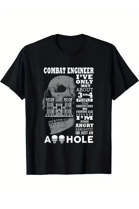 Combat Engineer Veteran Engineering Veteran's Day T-ShirtCombat Engineer Tee mens mechanical 180G 100% Cotton black classic funny Classic Unisex Shirt Graphic tshirts Trendy Unisex Shirt Crewneck tshirts Was $8.00