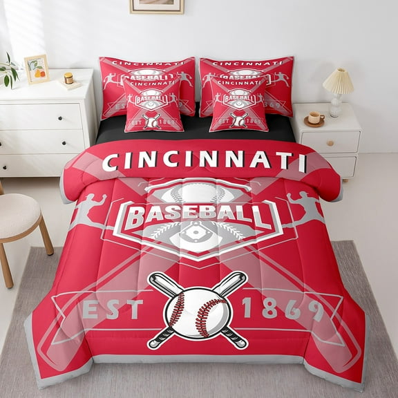 Twin Comforter Set 7 Pieces, All Season Reversible Bed in a Bag Twin, Ultra Soft Twin Bedding Set with Baseball Comforter, Flat Sheet, Fitted Sheet, Pillowcases, Pillow Shams,Cincinnati From $37.99