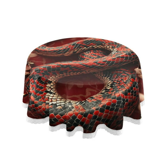 Clearance YAZAOO Round Tablecloth Red Snake with Flowers Pattern Tableclothes $22.24 Was $24.99