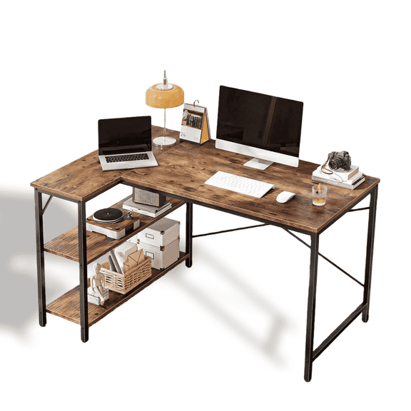 Reduced price CONCETTA 47” L Shaped Computer Desk with Reversible Storage Shelves, Corner Gaming Desk with PC Stand, Home Office Writing Study Table, Black From $47.99