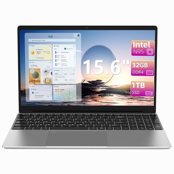 Best seller 15.6" Laptop Intel Alder N95, 32GB RAM, 1TB SSD, Windows 11 Pro Work Computer, Fingerprint Reader, Backlit Keyboard From $269.99