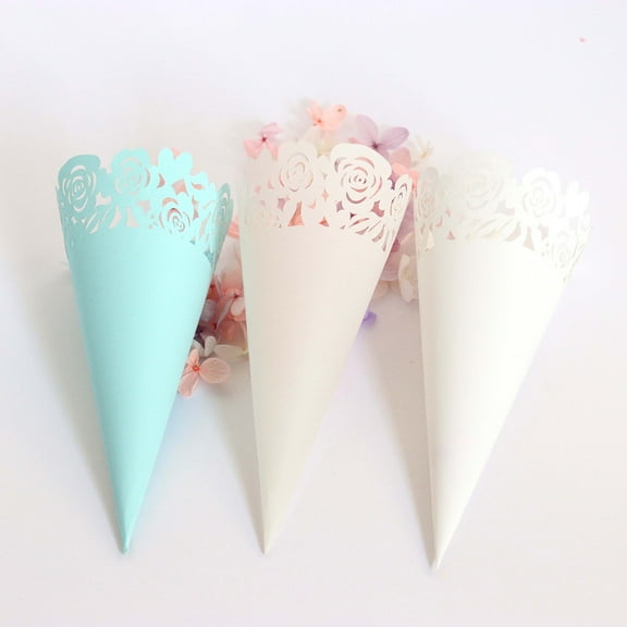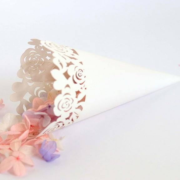 current price $11.20Raindrops 50pcs White Hollow Rose Pattern Dried Flower Cone Wrappers for DIY Lace Paper Small Bouquet Packaging Flowers Wrapping Tube