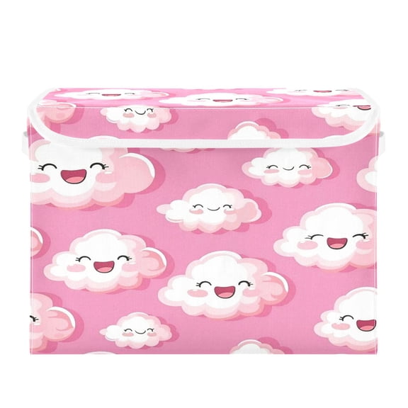 current price $21.99Storage Box With Lid 16.5x12.6x11.8In Foldable Stacked Household Storage Box Pink Clouds