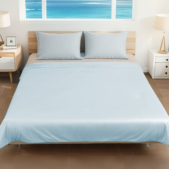 Cooling Comforter Twin Size, Double-Sided Cooling Tech Fabric Blanket for Hot Sleepers and Night Sweats, All-Season Breathable Lightweight Comforter, Light Blue From $23.99