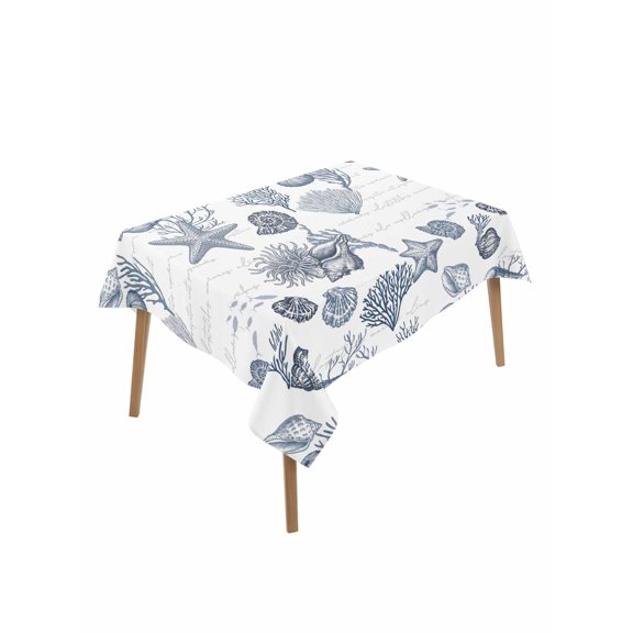 Navy Blue Coastal Rectangle Tablecloth, Nautical Starfish Coral Shell Ocean Summer Waterproof & StainResistant Tablecloth, Washable Oil-proof Table Cover for Dining/Party/Wedding/Buffet 52x70 In From $27.99