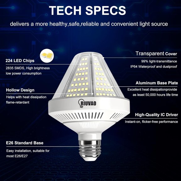 Luxrite 80W/100W/120W LED Corn Light Bulb, 400W HID Equivalent, 3 Color Selectable, Up to 17500 Lumens, E39 Base From $203.49