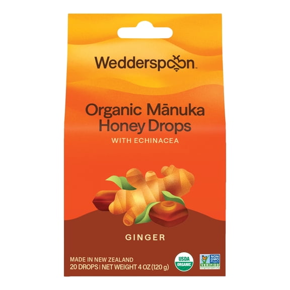 Wedderspoon Organic Manuka Honey Drops Ginger, 20 Count $10.99 55.0 ¢/count