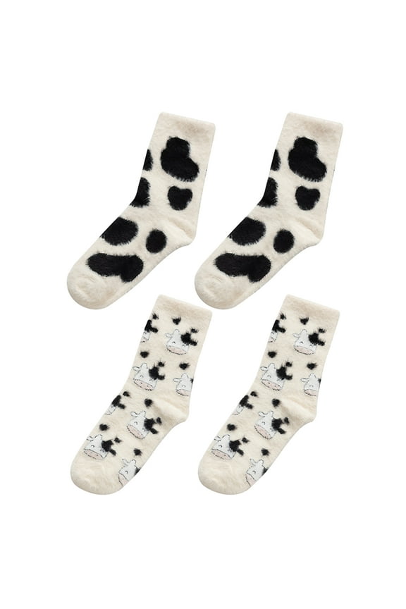 2 Pairs Delicate Cartoon Cows Socks Female Furry Socks Tube Plush SocksCute Stuff Cow Print Socks For Women Fuzzy Winter Fluffy Lazy Sleeper Socks Warm Thick Cozy Trendy Cow Plush Mid-Calf Socks Cow Themed Halloween Christmas Birthday Gifts for women teen girls Was $10.99