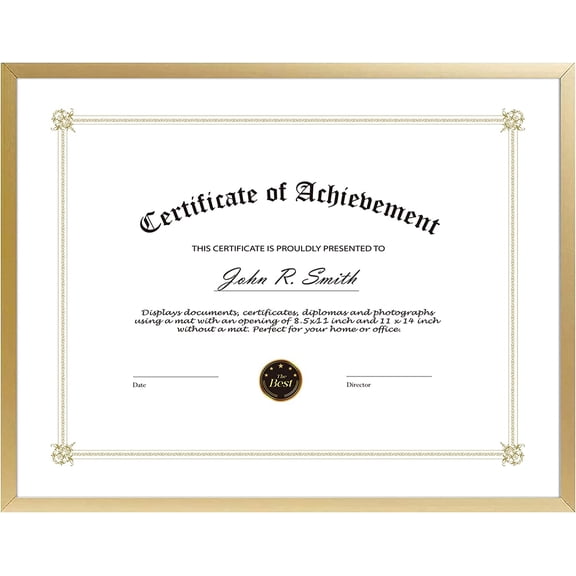 current price $37.98MKEUDQ-, 8.5x11 Aluminum Certificate Frame, Metal Diploma Frames for 8.5 x 11 Documents, Real Glass Front with Easel Stand (Gold, 1 Pack)