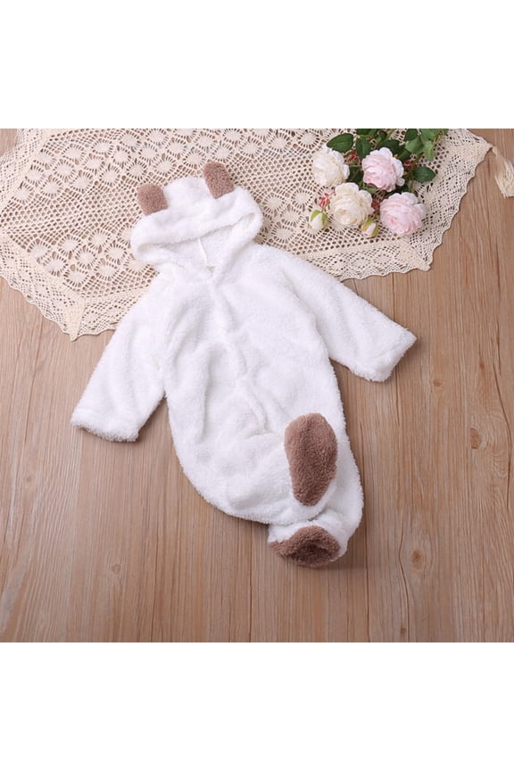 Clearance SHENGSI Newborn Furry Warm Hooded Jumpsuit, Baby Furry Warm Hooded 0 1 Year Old Baby Solid Color Zipper Long Sleeve Long Leg Crawling Suit
