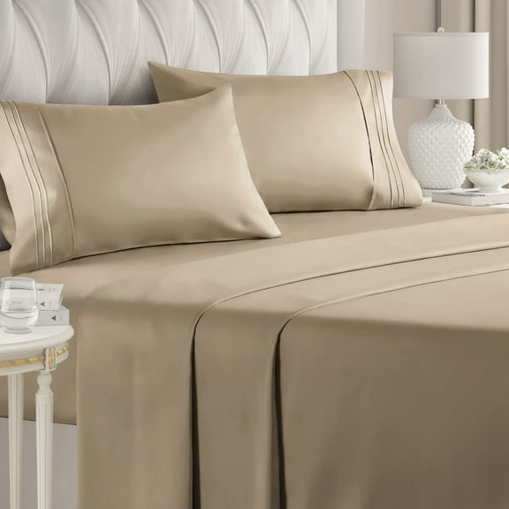 Deep Pocket 1500 Series Sheet Set – Soft, Durable, Hotel-Style Comfort , California King, Cream/Tan From $23.23