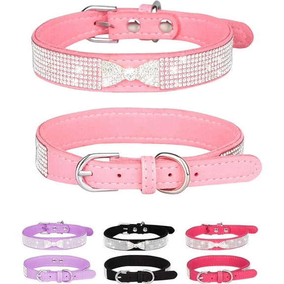 current price $11.49Girl Puppy Collars Pink Dog Collar Rhinestones Dog Cat Collar Bling Diamond with Rhinestone Crown Flowers Bowtie Bone Decoration for Girl Dogs Cats Collar AccessoriesS