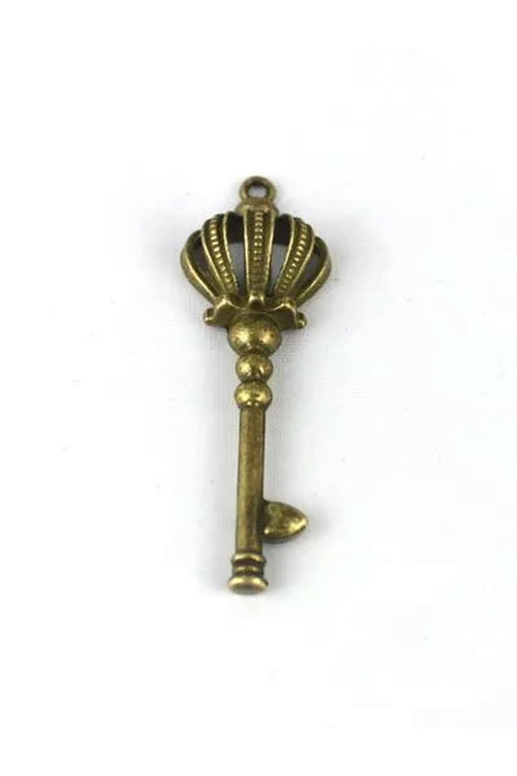 30pcs Antiqued Bronze Crown Key Pendant 57x19mm $15.99