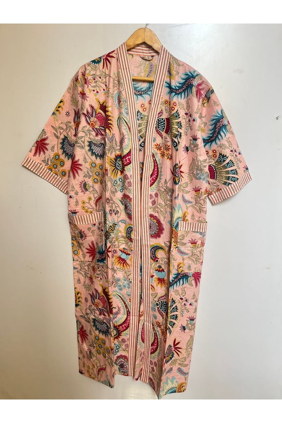 Cotton kimono Robe Dressing Gown, Block Print Bridesmaid Robe, Summer Nightwear, one Size Robe , Handmade Cotton Robe, Crown Print RobeCotton kimono Robe Dressing Gown, Block Print Bridesmaid Robe, Summer Nightwear, one Size Robe , Handmade Cotton Robe, Crown Print Robe $29.99