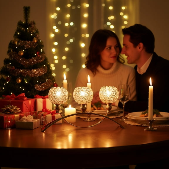 Yonrjhukm European Electroplated Crystal Candlestick, Three Head Arch Design for Weddings, Dinner Parties, Home Decor, Multi-Scene Application, Ideal Gift for Special Occasions