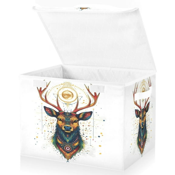 Ryvnso Deer Head Paint Large Lidded Foldable Storage Baskets Cubes Boxes Lids Bin for Home $20.99