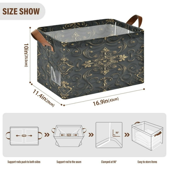 BZSMCE Collapsible Fabric Cube Storage Bins Elegant Black and Gold Pattern Design Pattern Storage Box $34.31