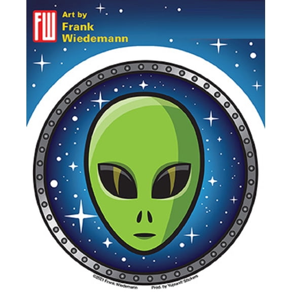 current price $8.95SPACE ALIEN STICKER - Frank Wiedemann Art's Weather Resistant, Extra Long Lasting Orignal In / Out Door Die-Cut Sticker