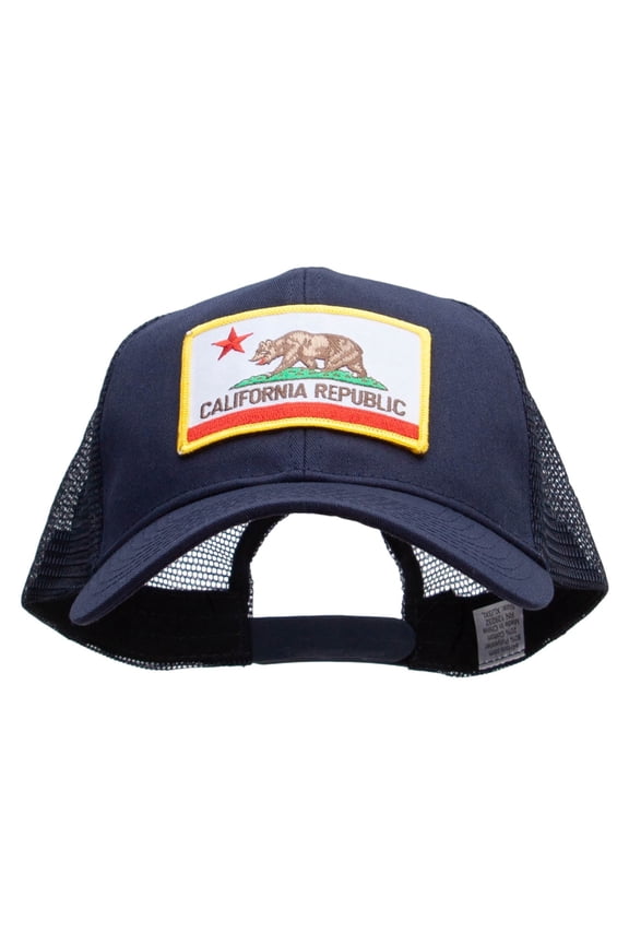 California State Flag Patched Big Size Solid Cotton Twill High Profile Mesh Pro Style Cap - Navy XL-3XL From $27.99