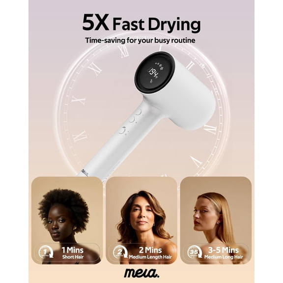 Mera ProMax Ionic Hair Dryer with Diffuser - Fast Drying Anti-Static Blowdryer for Women & Stylists, cUL Certified Self-Cleaning LED Screen